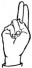 На ћирилици написано БЛАЖА ПЕРИЋ састоји се из 10 слова [?]. Исписано ћириличном једноручном азбуком за глувонеме: